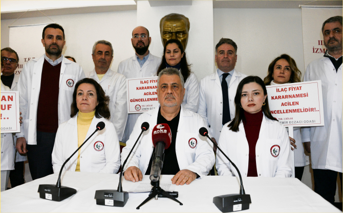 Artan ekonomik baskılar ve ilaca ulaşmada yaşanan güçlükler nedeniyle zor günler geçiren eczacıların sorunlarını dile getirmek için İzmir Eczacı Odası tarafından gerçekleştirilen basın toplantısında konuşan Oda Başkanı Ecz. Tuncay Sayılkan bu sorunların çözümü için acil önlemler alınması çağrısında bulundu.